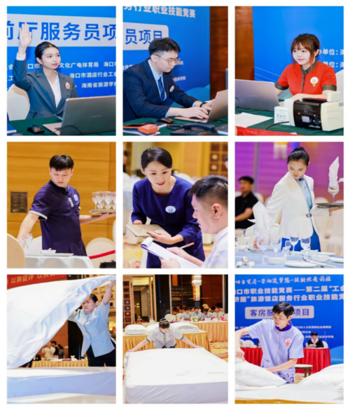据了解,竞赛涵盖前厅服务、客房服务、中餐服务、西餐服务四大传统核心项目,全面覆盖旅游饭店服务全流程。本次参与选手既有深耕行业二十年的技术能手,也有崭露头角的职业新秀,充分展现海口经济圈文旅从业者的梯队活力。