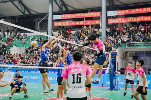 “非常高质量的配合,这个球太精彩了,让我们一起为他们加油……。”现场氛围热烈,观众席早早坐满了球迷,主办方还专门为现场观众请来了专业解说,并全程进行直播,上万人涌入直播间,和现场观众一起聆听解说从专业角度分析球员表现、球队特点以及每一个球背后的得分要点,从不同的角度感受这场乡村排球盛宴的魅力。