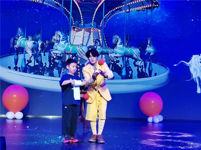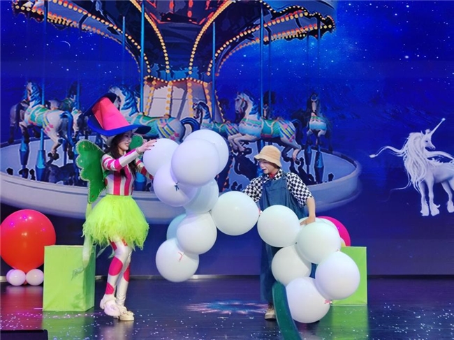 演出现场,欢乐氛围全程拉满。滑稽默剧妙趣横生,演员们夸张灵动的肢体语言、诙谐幽默的表情神态,让台下观众忍俊不禁,笑声此起彼伏;喜剧魔术环节惊喜不断,看似高冷严肃的魔术师,以出神入化的手法、出其不意的反转,引得小朋友们惊呼连连,大朋友也为之惊叹;创意艺术气球秀更是将气氛推向高潮,五彩气球在演员手中变幻出万千造型,萌趣可爱、脑洞大开,仿佛将剧场化作梦幻气球王国,满足了所有孩子对童话世界的想象。