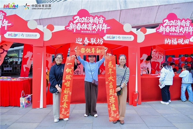 本次嘉年华活动设置4大亮点——“2026海南省新春体育大拜年暨全民健身大拜年”展示区、面向全龄人群开放的“全民运动体验区”、“乒乒乓乓”互动打卡娱乐区,以及美食主题集市。本次嘉年华活动以体育为纽带,实现运动体验与休闲消费的双向赋能。活动整合多方资源,共设置6个核心品牌展示展位,中国体育彩票、海控全球精品免税城、海口旅游×万象宠粉福利站等品牌集中亮相;同时设置新春大拜年互动展位,开展现场挥春服务,书法家现场挥毫送“福”字春联,将体育祝福与新春祈愿完美融合,营造浓厚新春氛围;美食市集汇聚30家特色商户,集聚本土美食与创意好物,丰富现场消费体验。
