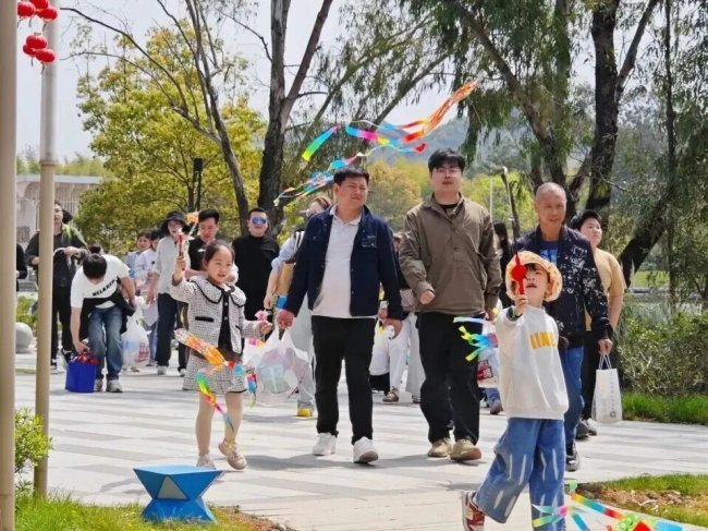 夜幕降临,鹰潭方特东方神画“闺蜜花朝节”迎来高潮。十二花神巡游队伍穿行在璀璨灯光中,随后一束束烟花腾空而起,在夜空中绽放出绚丽花朵,引来阵阵惊叹。在白鹤湖嘻嘻哩生态水世界,“童趣纸鸢嘉年华”吸引了大批亲子家庭。草地上,孩子们牵着风筝线奔跑,五颜六色的风筝在蓝天中摇曳。灵溪湖生态旅游区的“一日游”踏青活动中,游客围坐草坪,弹着吉他、喝着咖啡,享受春日慢时光。