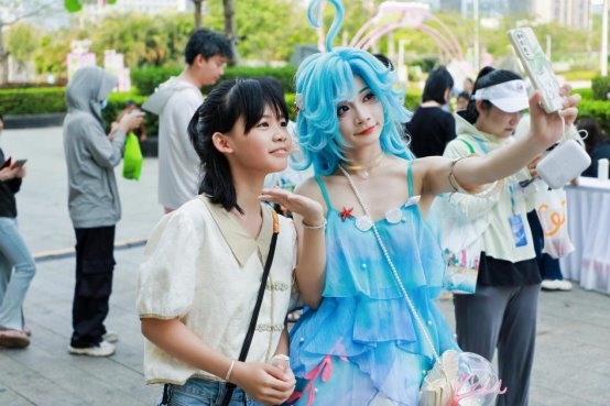 每个巡游点位均安排了30分钟的快闪活动:Coser们在巡游的过程中通过静态造型展示供游客拍照,邀请近距离合影互动等,让粉丝实现与英雄“贴贴”的愿望。来自广州的电竞爱好者邱先生举着合影照兴奋地表示:“特意和朋友来参加嘉年华,没想到逛个街,就能偶遇喜欢的英雄!”海口市民王先生也感慨道:“电竞氛围太火热了,能线下与喜欢的游戏英雄Coser合影,感觉游戏里的热血照进了现实!太开心了!”