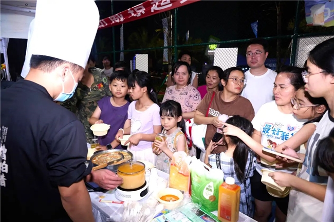 现场设置潮饮专区、特色美食专区、市县地标好物专区、糟粕醋专区等四大重点板块。让山海风味、黎苗风情与海岛优品在这里与足球琼超相遇。赛场上的呐喊、展区里的香气、灯光下的人潮彼此交融,让这个夜晚既有足球的热烈,也有琼州烟火的丰盛。