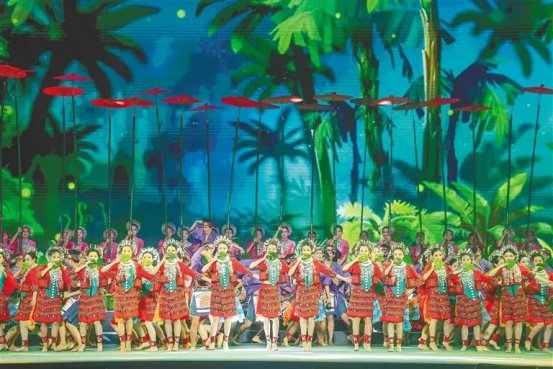 黎锦、儋州调声、哩哩美、琼剧、崖州民歌等非遗项目以串烧形式轮番登场,让观众深度体验民族歌舞的优美,充分感受民族文化的深厚底蕴。