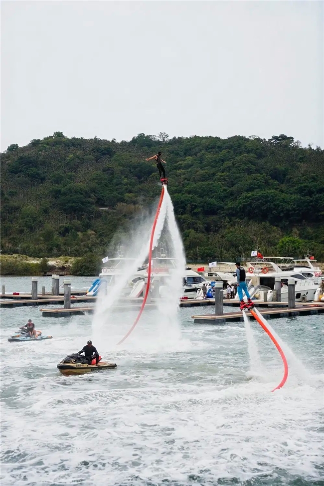现场同步开放摩托艇、动力板、桨板、皮划艇、水上飞龙等多元水上运动体验项目,搭配特色互动体验场景,广泛普及海洋运动文化的同时,进一步培育滨海消费新场景,助力海南全民文旅体融合发展。